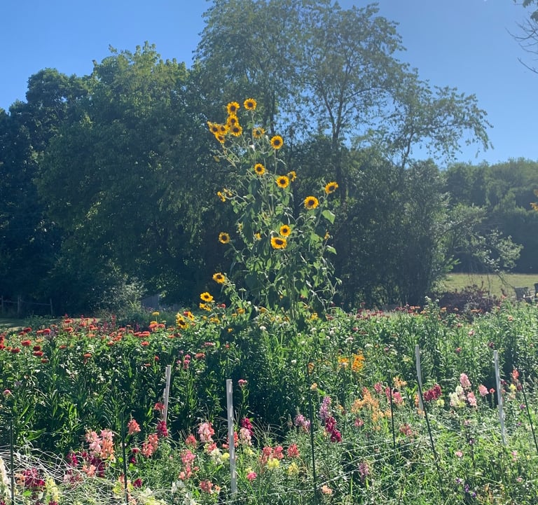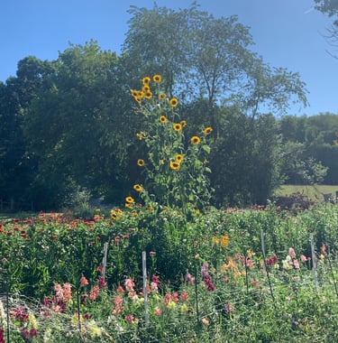 The story of our farm began in spring 2021. We were newly engaged and planning a September wedding. Mikayla decided to save money by arranging her bouquet from dried flowers. It was then that she began to wonder… could she also grow the cut flowers for the reception?