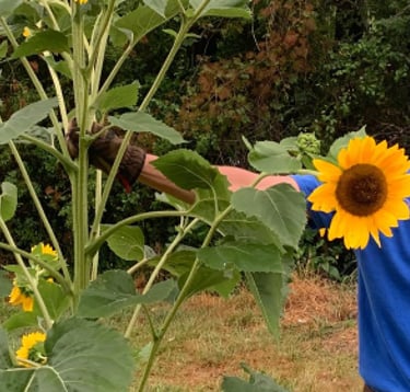 Steven is a life-long farmer who grew up raising broiler chickens and angus cattle here in Ronda. He also has experience teaching agriculture, which makes him a great encyclopedia of all things ag related. While cows are his first and truest love, Steven also loves growing plants and graciously helps out on the flower farm. He is the chief tractor operator and the mastermind behind all things irrigation, pest and disease control, fertilizer and soil health. He makes our plants (and Mikayla) the happiest around!